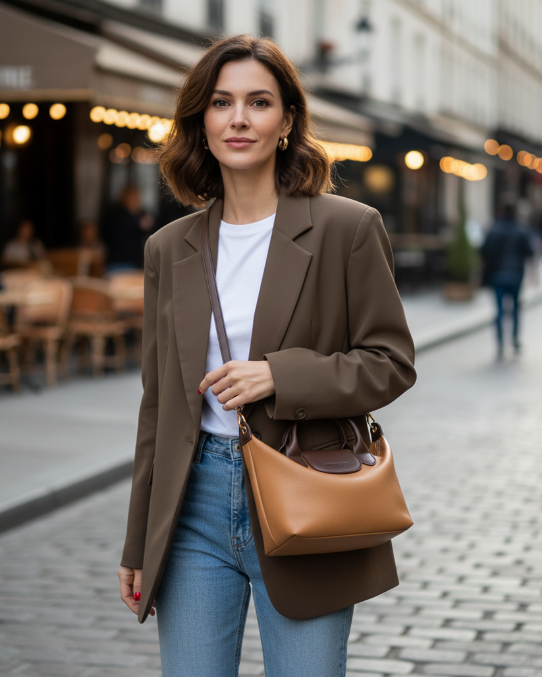 A mano per un tocco sofisticato, a spalla quando hai bisogno di leggerezza, a tracolla per muoverti senza pensieri. La sua versatilità ti segue in ogni momento della giornata, dal lavoro a una cena improvvisata. È pensata per stare al passo con te, non il contrario.