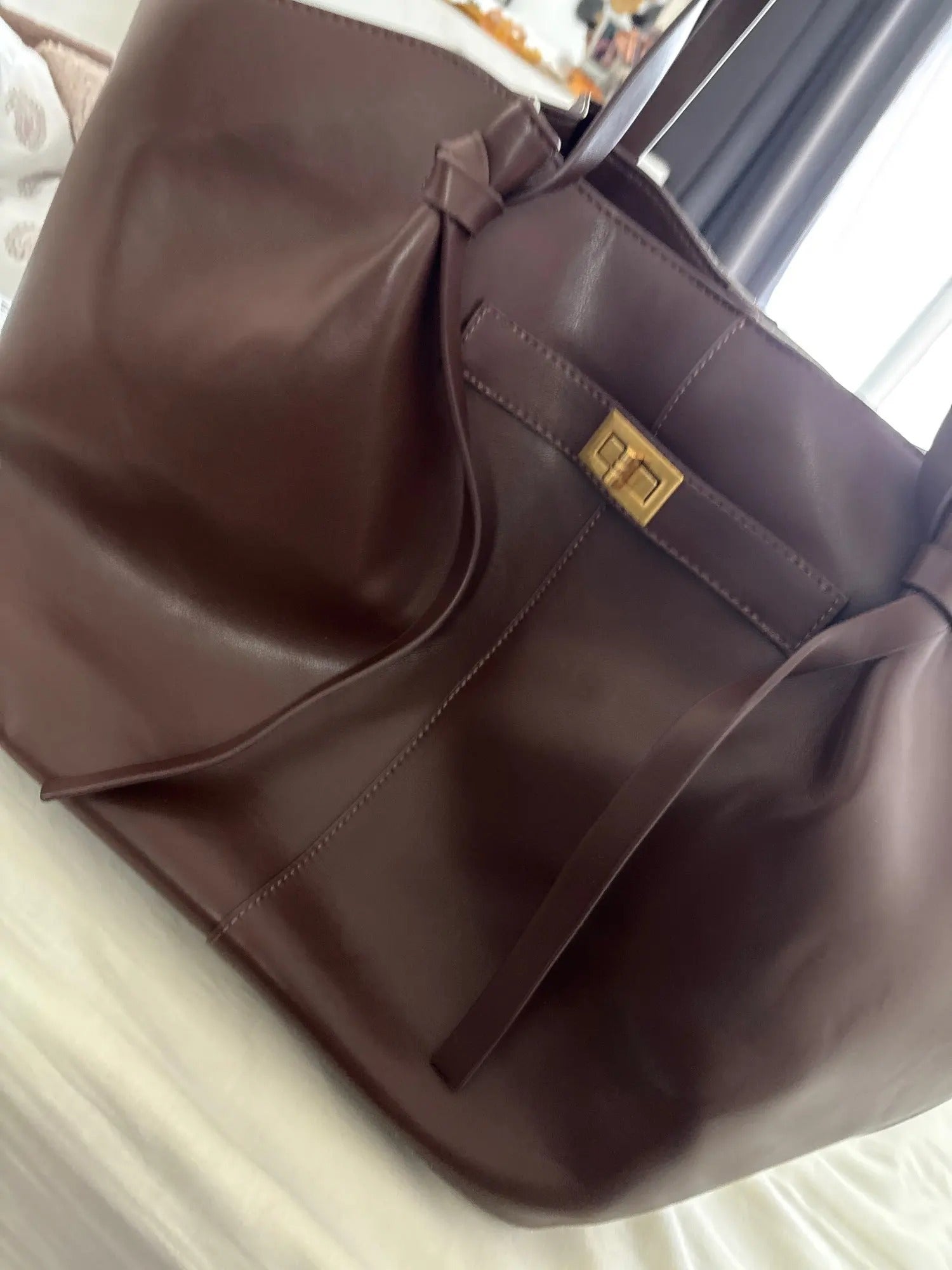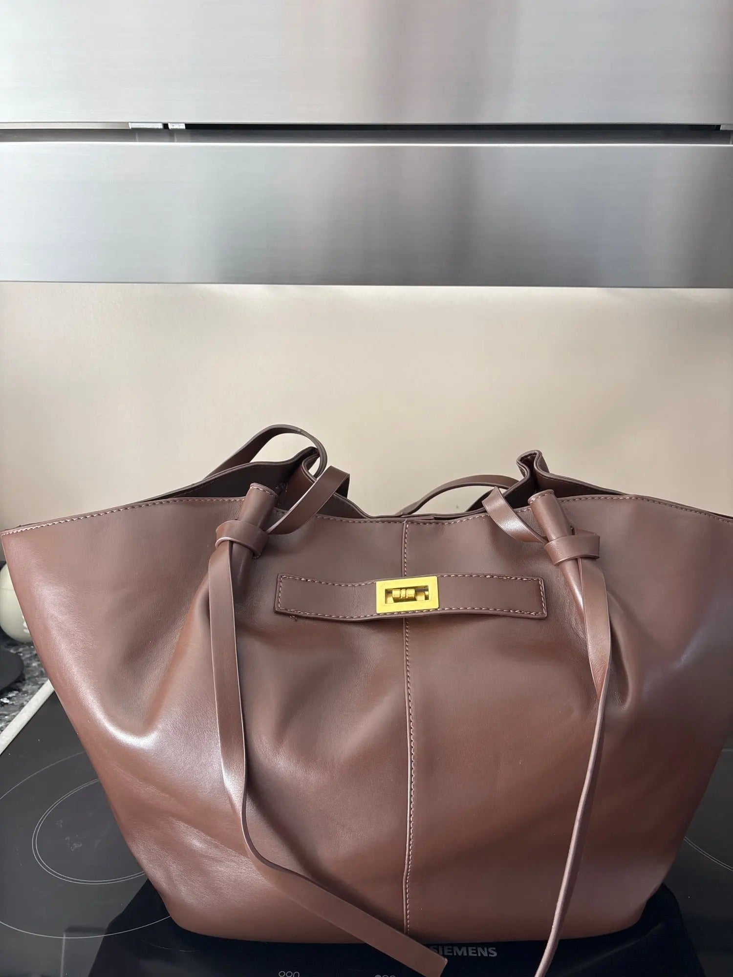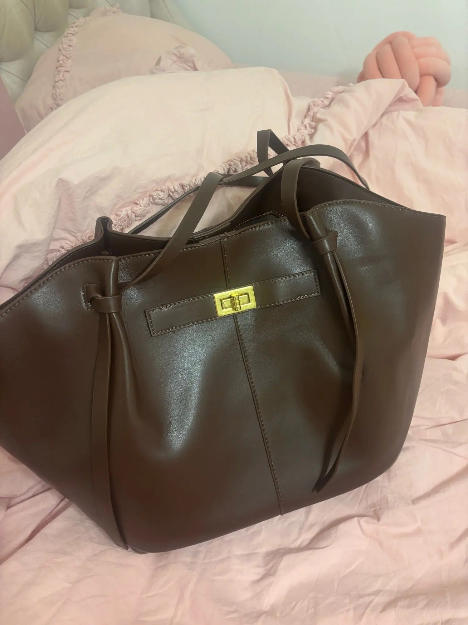 È fantastico, ragazze, è davvero grande, ci sta dentro un sacco di cose, è perfetto per le lezioni, si porta ovunque. L'ho preso nero e lo prenderò anche marrone perché mi piace tantissimo, sta con tutti gli outfit.