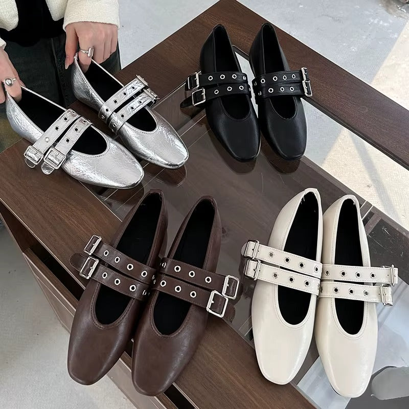 Questa Mary Jane unisce lo stile classico al gusto contemporaneo. Il doppio cinturino regolabile con fibbie in metallo dona carattere e originalità 👡, mentre le linee pulite della tomaia mettono in risalto l’eleganza del modello. È una scarpa che valorizza sia un outfit quotidiano che una mise più curata, diventando un dettaglio di stile in ogni situazione.